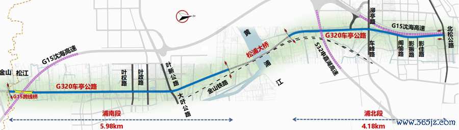 G320公路松江段地处交通要冲,沿线链接松江区叶榭、车墩两镇,全长10.16公里。原车亭公路为双向2快2慢的二级公路,在G320金山段已完成拓宽的配景下,松江段成为全线交通瓶颈,拥挤常态化。本次改建工程与金山段范例对接,郊区段拓宽为双向6快2慢,城镇段增设东谈主行通谈。